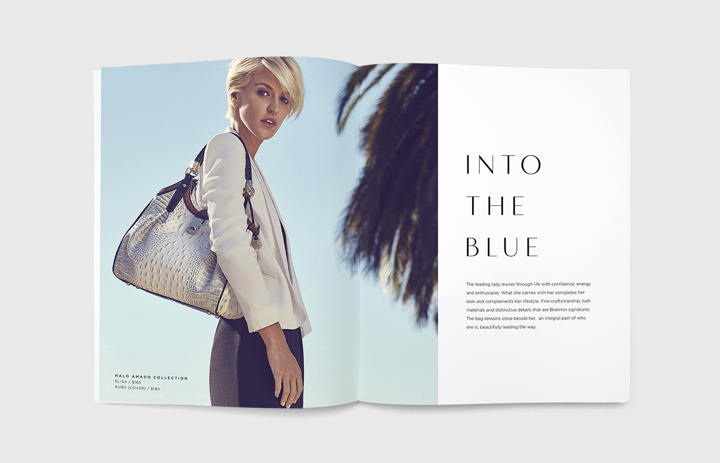 Seasonal and brand creative for Brahmin handbags. Photography, catalog design, and print ads were developed for Brahmin's Spring 2016 season. Brand hangtag and creative for The Vault were developed to highlight Brahmin's unique craftsmanship story. // Agency: Toth+Co / Role: Art Director + Designer / Creative Director: Wendy Brown / Photographer: Emma Tempest / Stylist: Tina Chai